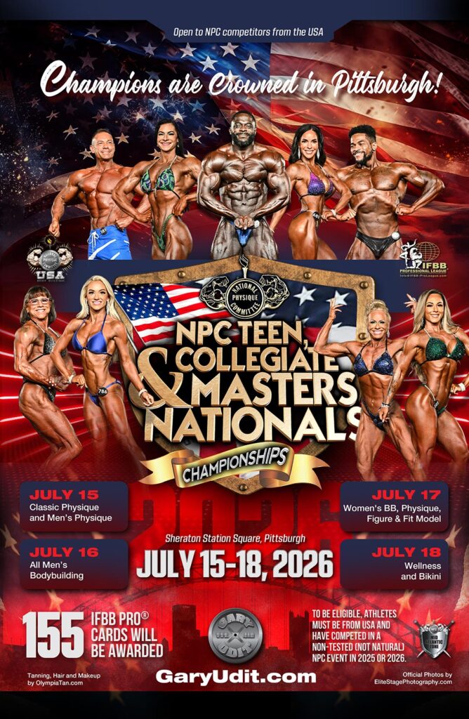 The big event of the summer! Over 150 pro cards! Open to US NPC athletes only. You must have competed in any non tested (not natural) NPC event in 2025 or 2026, no placing required. See classes on entry form below